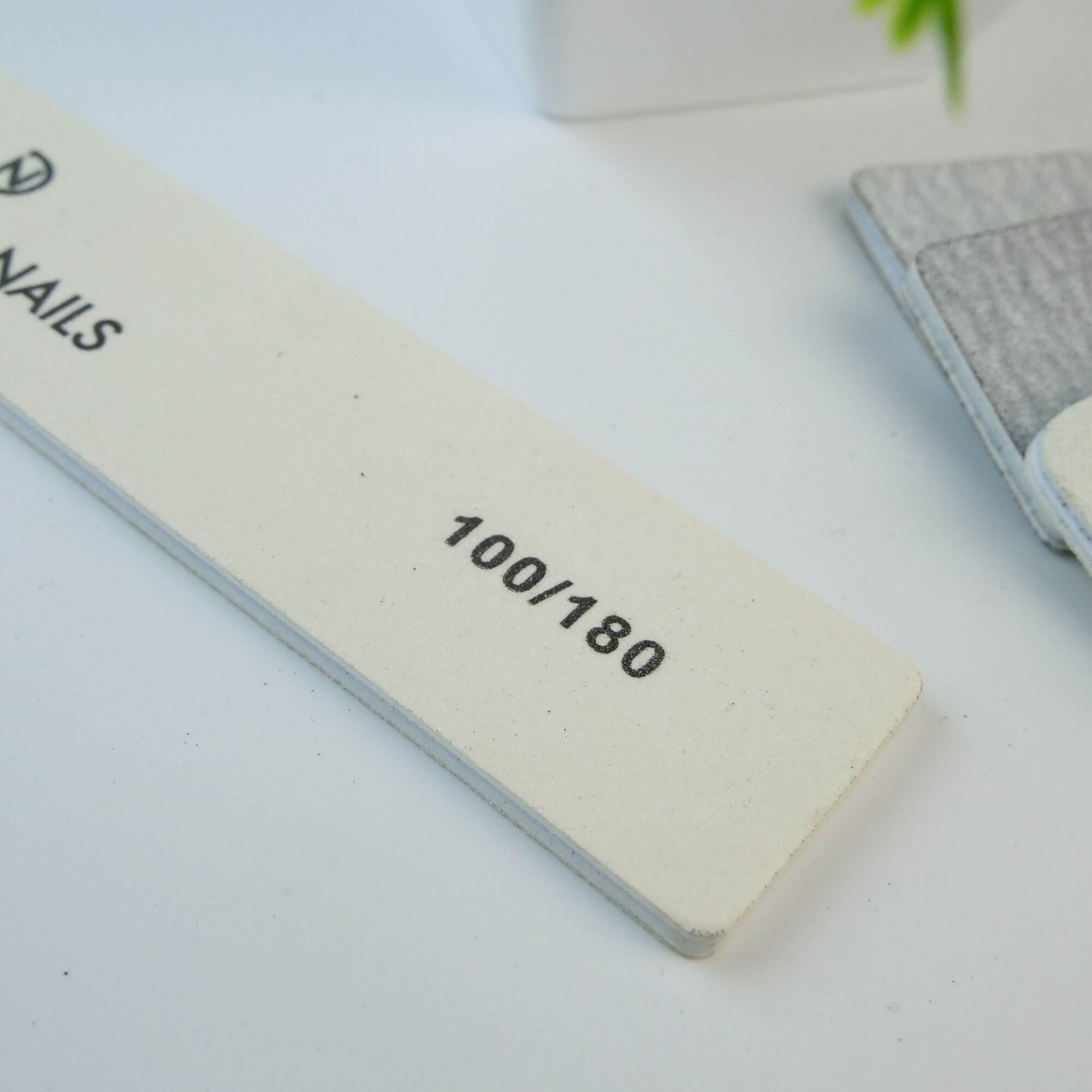 Pilă Unghii Dreptunghi Alb – 100/180 Diamond Nails este o pilă cu două fețe, cu design ergonomic, care asigură atât îndepărtarea rapidă a materialului, cât și finisarea delicată, fiind eficientă pentru unghii construite mai groase.